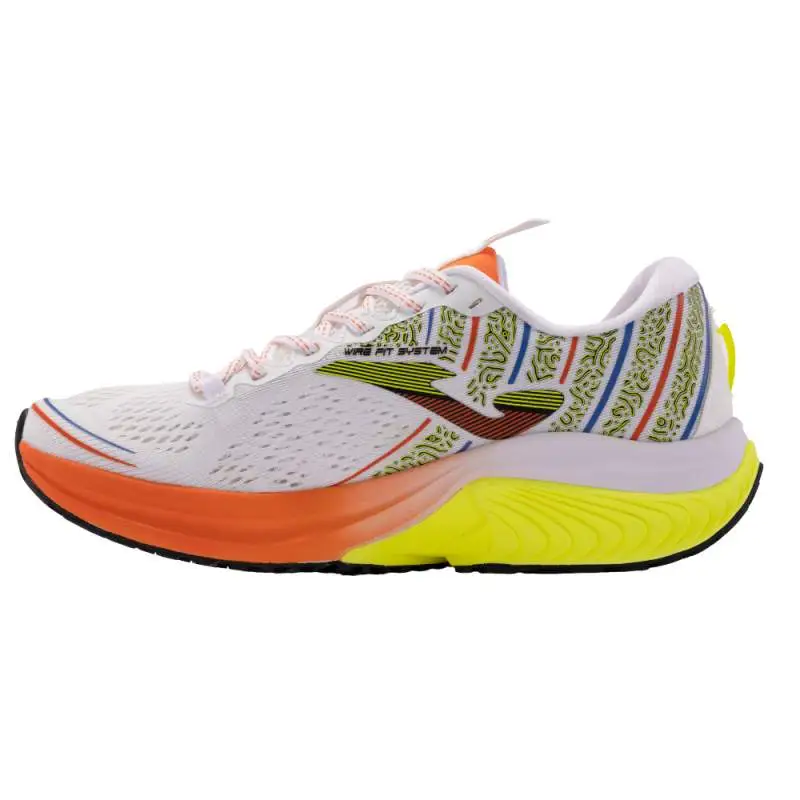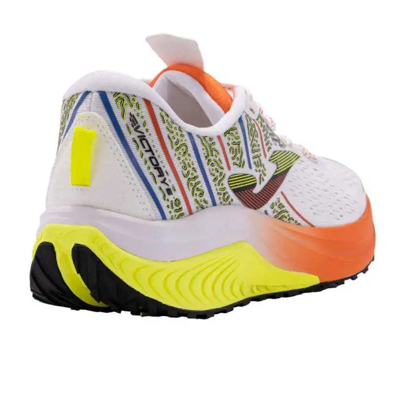 Description Men’s running shoes. We have completely renewed the Victory model adding lightness, breathability, and cushioning. These comfortable training shoes are recommended for runners with a light pace (over 5 and a half minutes per km). The new upper is made with technical mesh finished in custom jacquard, lighter and more breathable. Featuring VTS perforations, allowing internal airflow and help the temperature of the foot to remain constant at all times. To adjust the shoes, we have added thermo-sealed synthetic material using the JOMA SPORTECH system. In the toe, we have applied the same material as the PROTECTION reinforcement. The improved midsole is made of dual density phylon, providing the perfect combination of stability and shock absorption. The outsole is still made of DURABILITY rubber, resistant to wear-and-tear on asphalt. Therefore, it also includes FLEXO bending lines for improving the ergonomics of the shoes, making the foot-step more natural. Drop 10 mm. Characteristics Nylon line and TPU Lace fastening Foam FULL DUAL PULSOR double phylon midsole Reinforced toe Tongue stitched onto the upper Technical Information 10 mm Drop Gentle pace: more than 5’30” per km Suitable for: medium weight Intensity of use: training Surface: asphalt